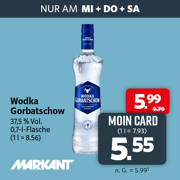 Angebote gültig solange der Vorrat reicht. Irrtümer vorbehalten. Sollten einzelne Artikel, z. B. aufgrund unerwartet hoher Nachfrage, schon am ersten Aktionstag ausverkauft sein, bitten wir um Entschuldigung. Die Kombination mit weiteren Rabattaktionen (z.B. Vorteilskauf) ist ausgeschlossen.