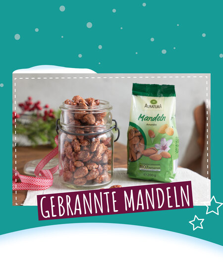 · Die Mandeln können mit allerlei Gewürzen verfeinert werden – von süß-salzig bis pikant: zum Beispiel mit Zimt, Kakaopulver, Kokosflocken oder Lebkuchengewürz, aber auch mit Salz, Curry oder etwas Chili.