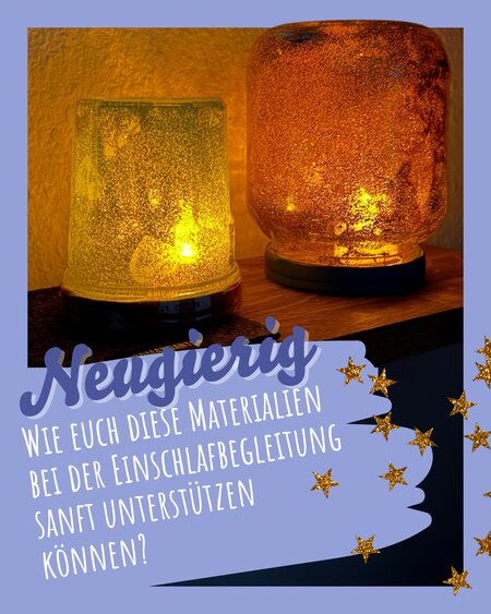 Aus einem Schraubglas, Transparentpapier und gaaanz viel Glitzer zaubern wir ein magisches, beruhigendes Glitzerlicht, das eure Kinder immer ansehen können, falls sie nachts einmal aufwachen.